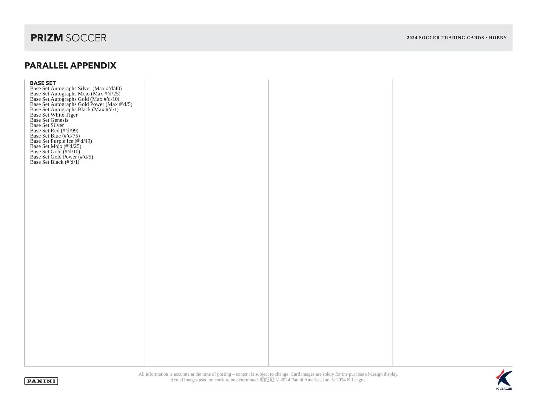 - K리그1 12개팀 168명, K리그2 5개팀 9명 등으로 구성된 베이스 카드 체크리스트