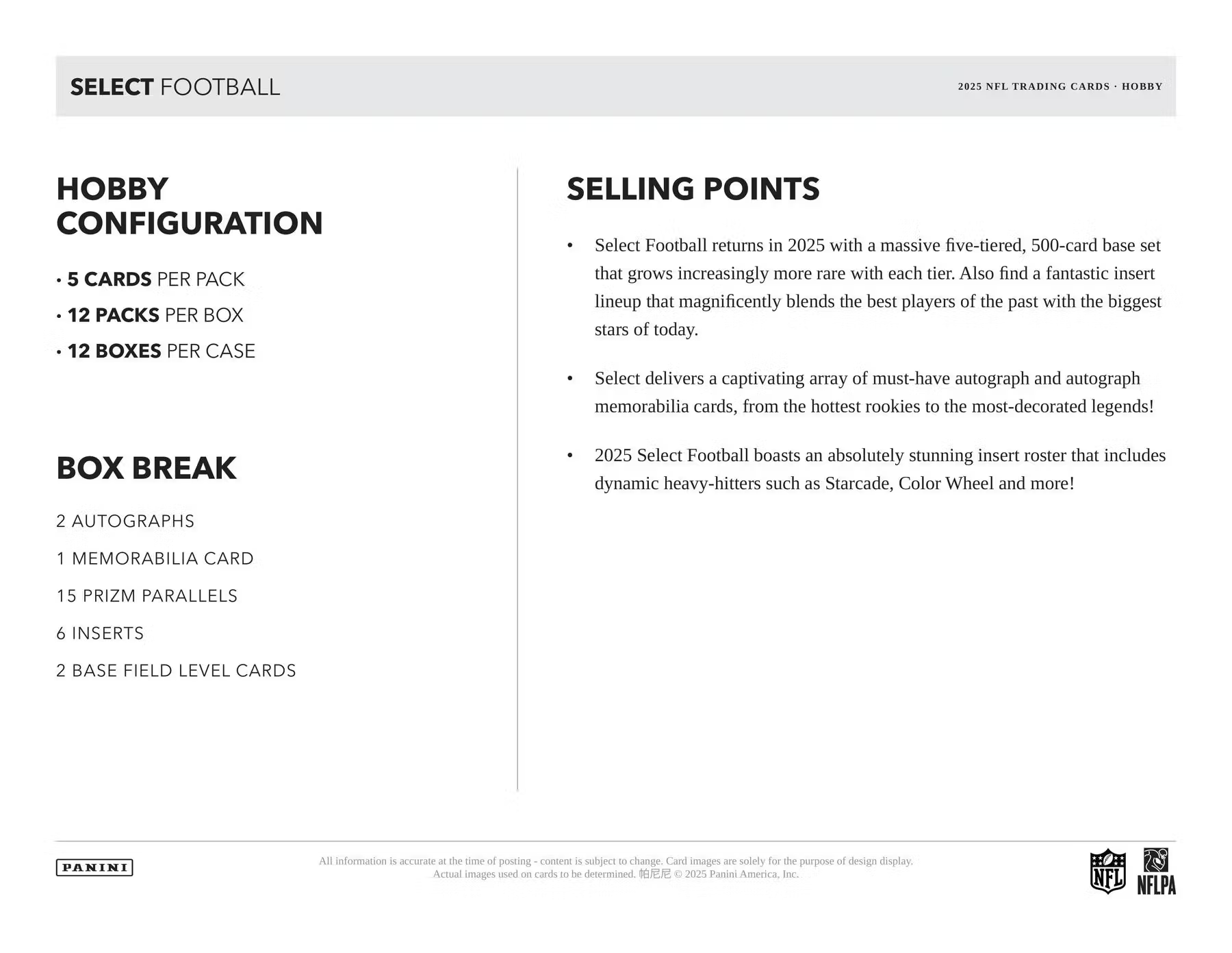 2025 파니니 셀렉트 풋볼 하비 박스